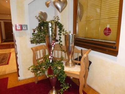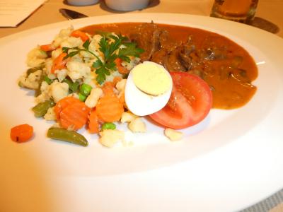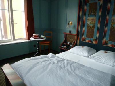 こじんまりとした街で、たくさんのお店があり、レストランも多く楽しい街です。お店の絵飾りの看板も、外壁の絵も見ながら歩くと、あっという間に見て回れます。ホテルは少々古い建物なので、なんとなく暗い感じがします。朝食は、7時からで、生野菜類はありませんが、チーズ類、パンもいろいろあります。ヨーグルト、果物もありました。