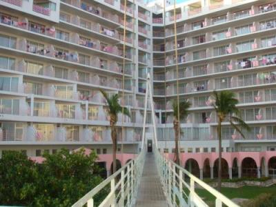 プールのある中庭(?)を囲んでコの字に建物が建っているので