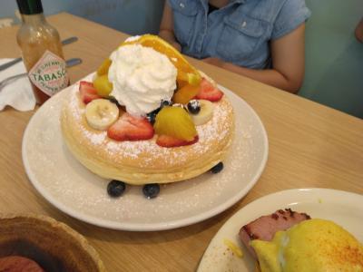 スフレパンケーキ・エッグベネディクトなど注文しました。ちょっとビールも飲み、お会計は12,000円でした。日本の感覚では、かなり高いですが、ハワイなので。