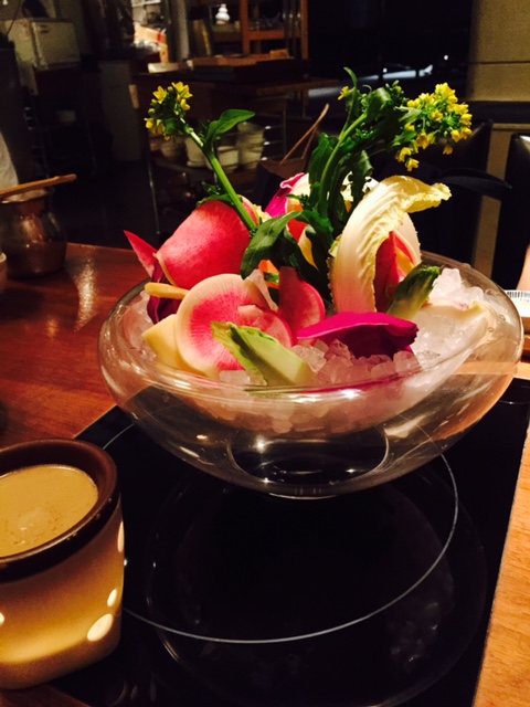 とってもきれいに盛り付けされたバーニャカウダや野菜のしゃぶしゃぶはとってもヘルシーで美味しかった!