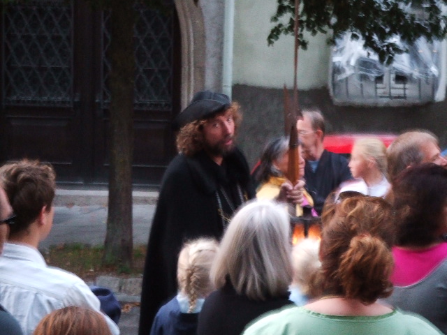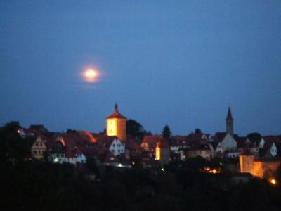 ローテンブルクの夜のイベントとして、夜回り番人のツアーがあります。8時くらいからスタートするようですが、有料です。行く方向が一緒だったので、私たちはただで後ろから付いていきましたが、とがめられませんでした。そのままブルク庭園で別れて黄昏時のローテンブルクの街並みを眺めるのがお勧めです。