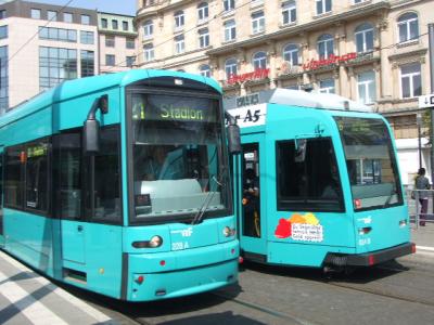 稲本選手が所属するアイントラハト・フランクフルトの本拠地、コメルツバンクアレーナへは、中央駅からトラムに乗っていきます。20分くらいだったと思います。