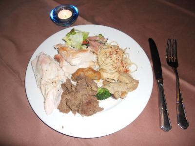 手の込んだ食事は、皆無でしたが、豚しゃぶと北京ダックモドキがメイン、ドカ出しじゃないし、美味しい。