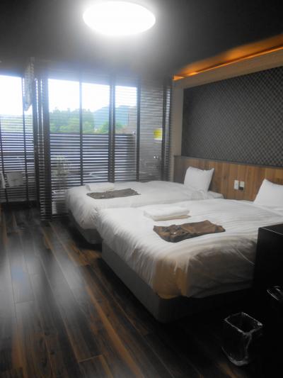 部屋は洋室ツイン、露天温泉付 \7,500 24時間滞在可だけあって、アメニティは充実してました。