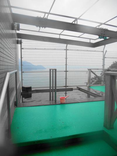 内湯のほか、最上階に貸切制の露天風呂が2ヶ所あり、岩風呂は、四人家族で入ったとしても大きすぎる湯船、十分な大きさです。展望の休憩所がありましたが、使われてる形跡はありませんでした。伊東温泉のヌルヌルするお湯の感じは少なかったです。