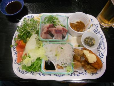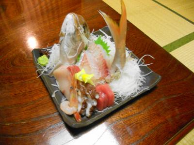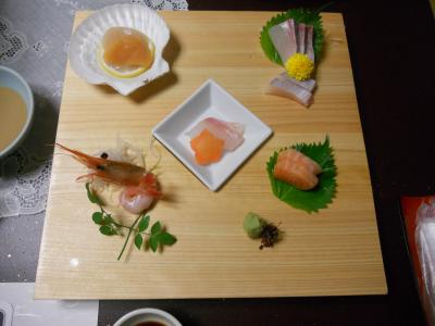 民宿ならではの料理、クエ刺(アラと同じ魚でしょうか?)アオリイカ活き造りを堪能 できました。