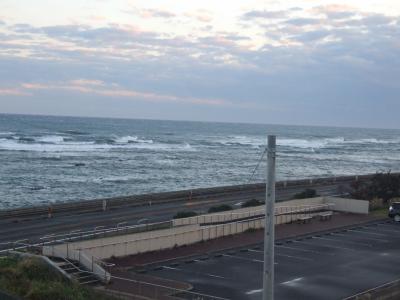 宿からすぐが海、車で走れる砂浜だと知りませんでした。水温もまだ生暖かく、海水浴客はいませんでしたが、サーファーはいました。
