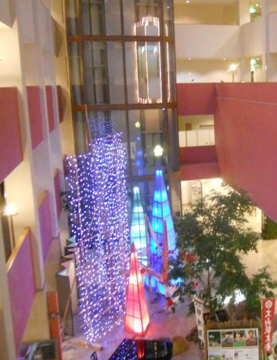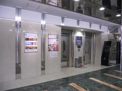 館内は1Fからの吹き抜けを客室が囲んでおり、一画にスケルトンのELVが配置されてました。アメニティーもそれなりに充実、食事が6F、お風呂がBFでした。