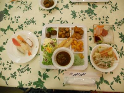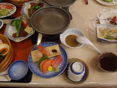 夕、朝食ともバイキング。連泊が限界な品揃えですが、ハマチ?は超新鮮かつ部位毎の味が楽しめました。