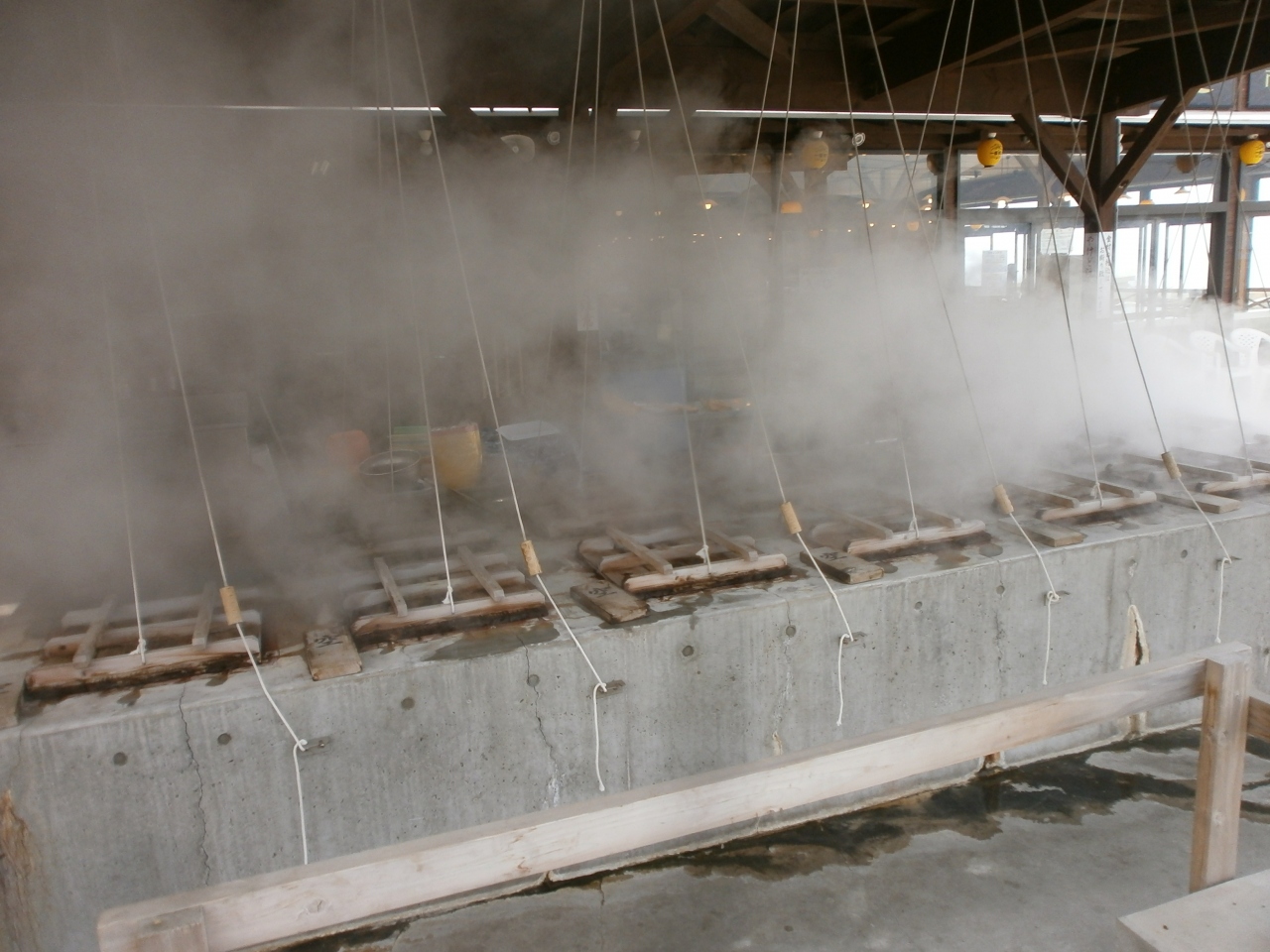 魚、肉、野菜をチョイスして精算を済ませたのち、スタッフさんが蒸してくれるスタイルでした。塩分を含んだ温泉、野菜が甘くて特に美味しかった。価格を考えると、観光客向けです。- 旅行時期