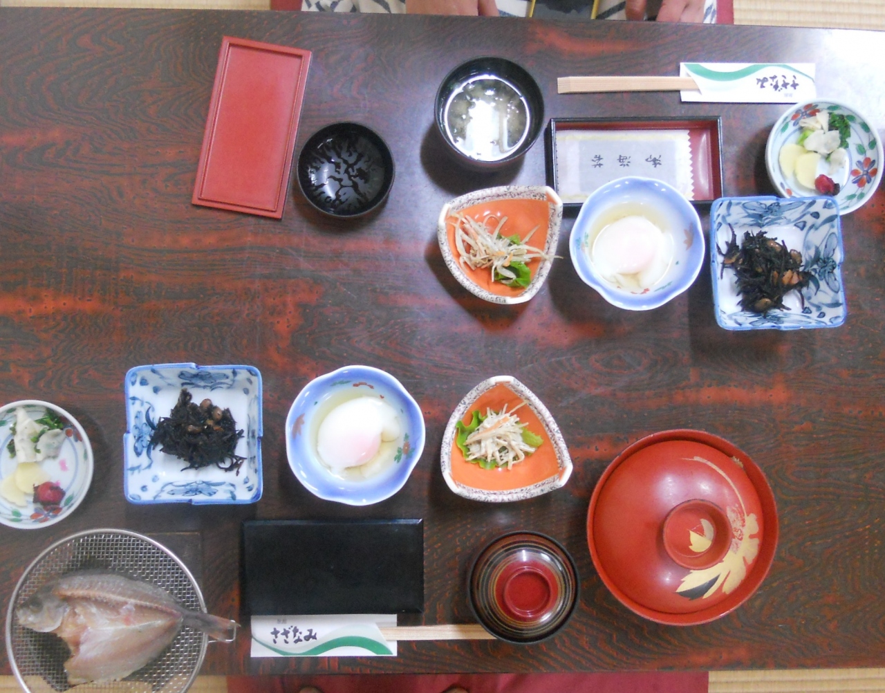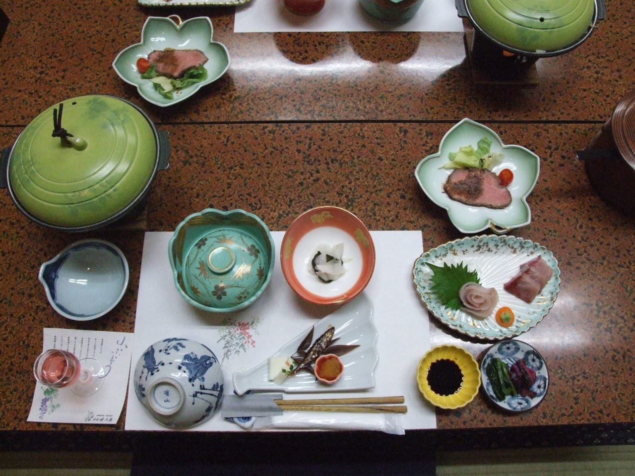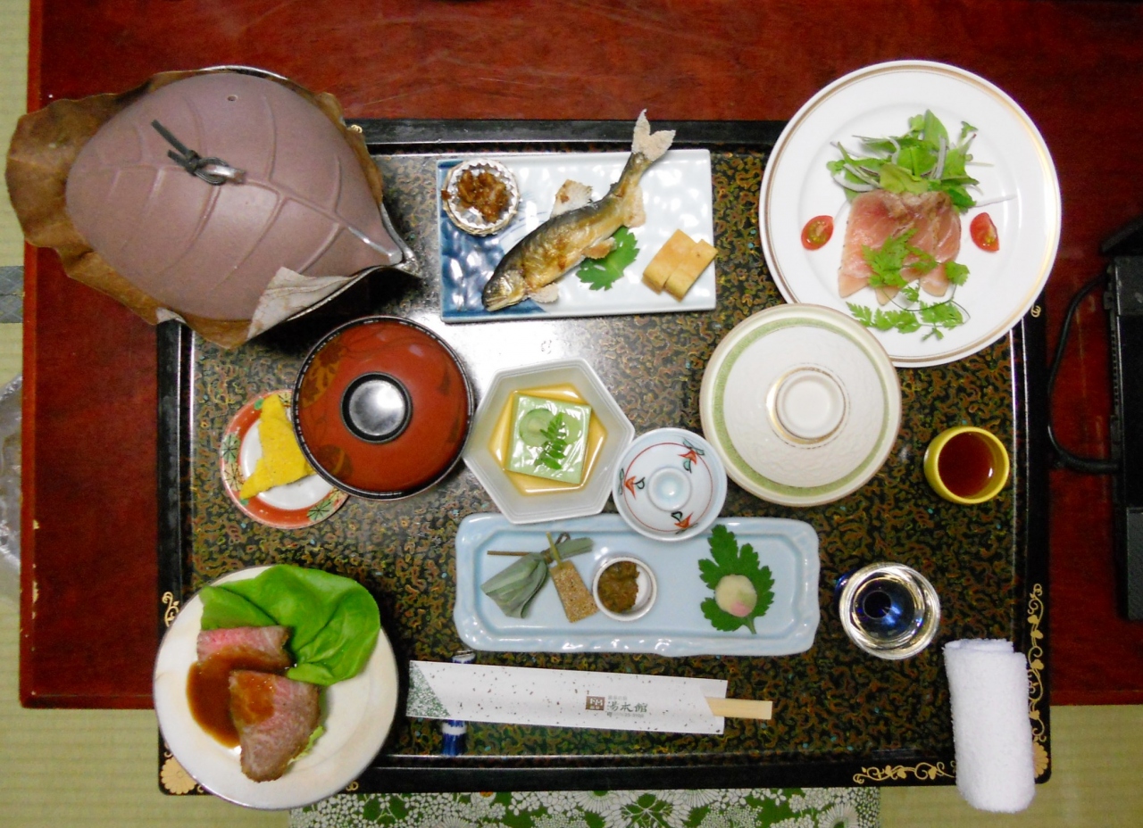 食事は、山の幸と海の幸に、飛騨川で採れた川魚、飛騨牛、朴葉みそは定番料理です。