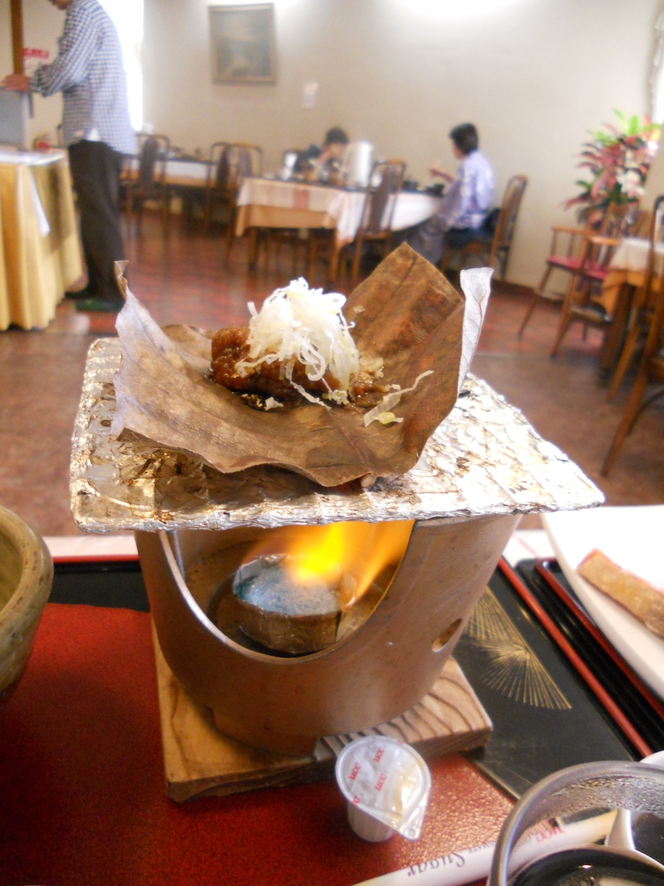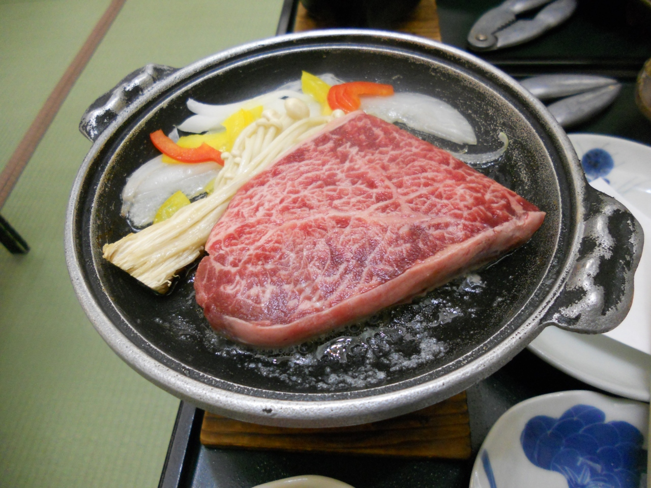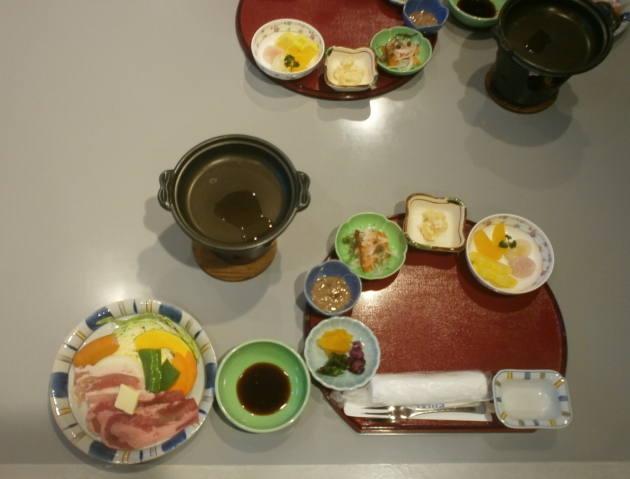 2食共食事処で、畳敷のテーブル席でいただきました。肉(ランプ肉かな?)の食べ放題は堪能しました。そんなにクドく無く、柔らかい肉でした。ただ、固形燃料+鉄板で焼くのが、カセットコンロ+どっかの溶岩石だったら雰囲気出たと思います。 朝は、信州らしさは感じられませんでしたが、和食でした。