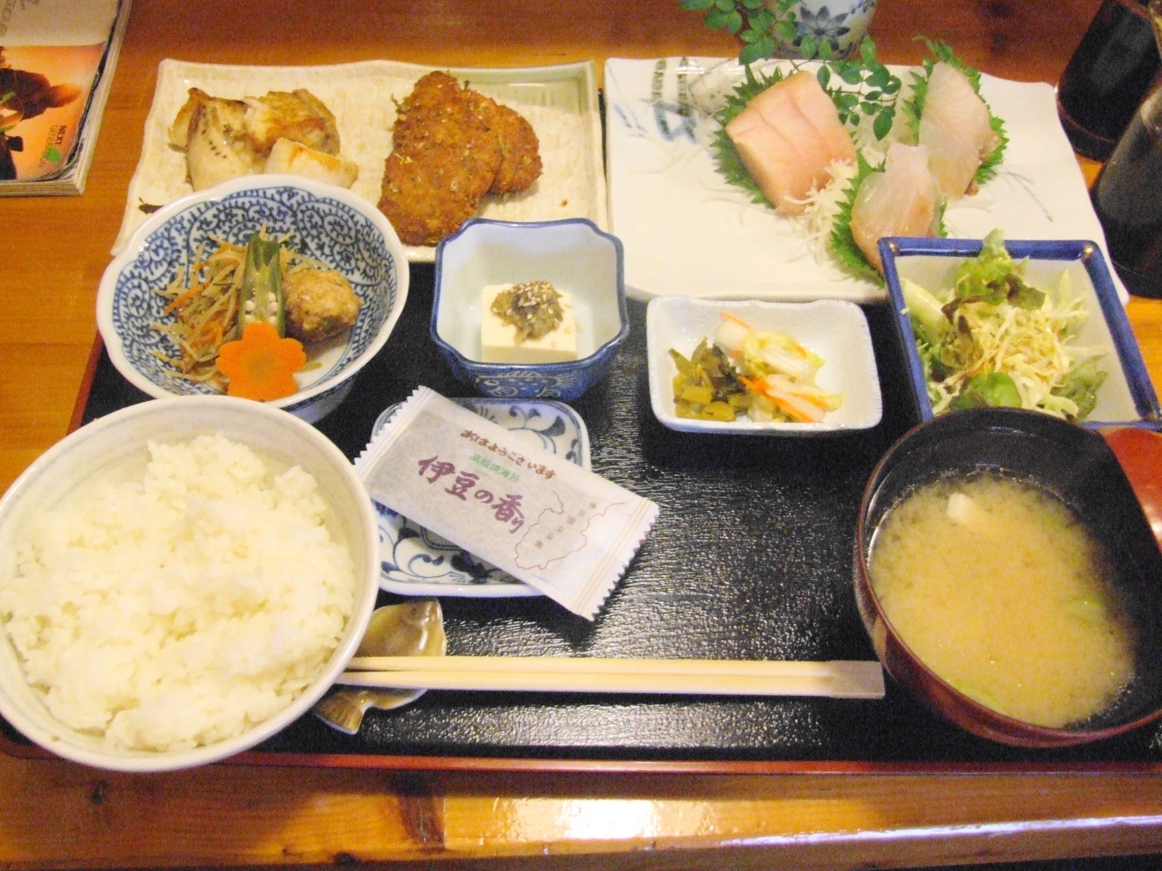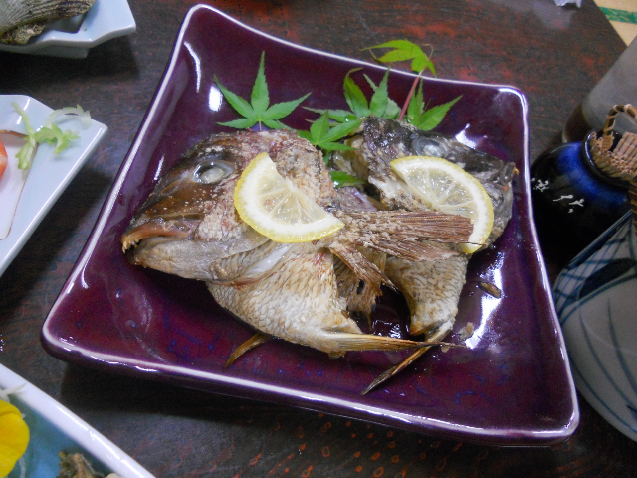 尾長鯛があるって、、、高級魚なんだそうです、海辺だけあって、魚は新鮮、塩焼きはふっくら、美味しく頂きました。