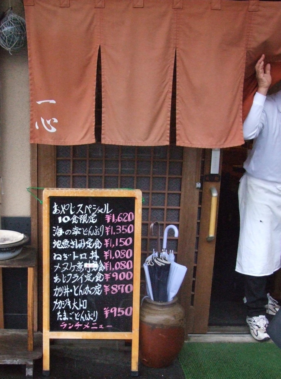 テーブル2、カウンター5席の店内、メニューはホワイトボードを見てとの事、店主の言われるまま、10食限定にしました。