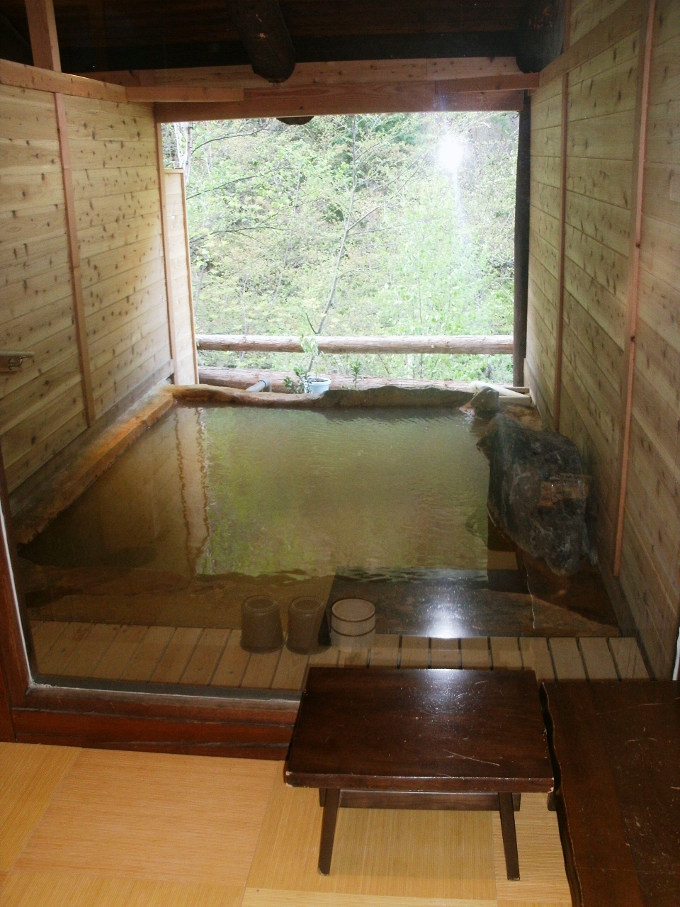 全15室ほどの宿、満室になる事は珍しいでしょうから、内湯/露天/貸切露天が2つあるので、ほぼ貸切状態で温泉に入れます。硫黄臭のある無色透明のお湯は、温泉らしい o(*⌒O⌒)b