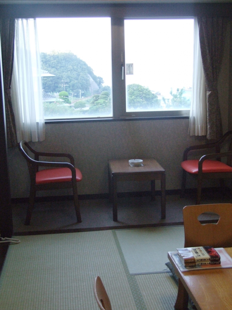 部屋からの眺望ゼロ、道路まででれば、神子の湾が見られます。