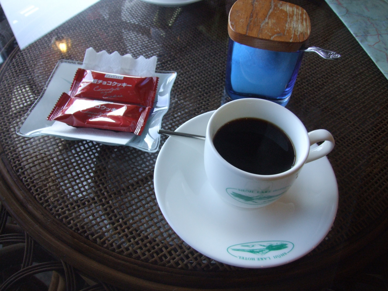 ロビーでウエルカムコーヒー、口数の少ない私には、余計なサービスでした。