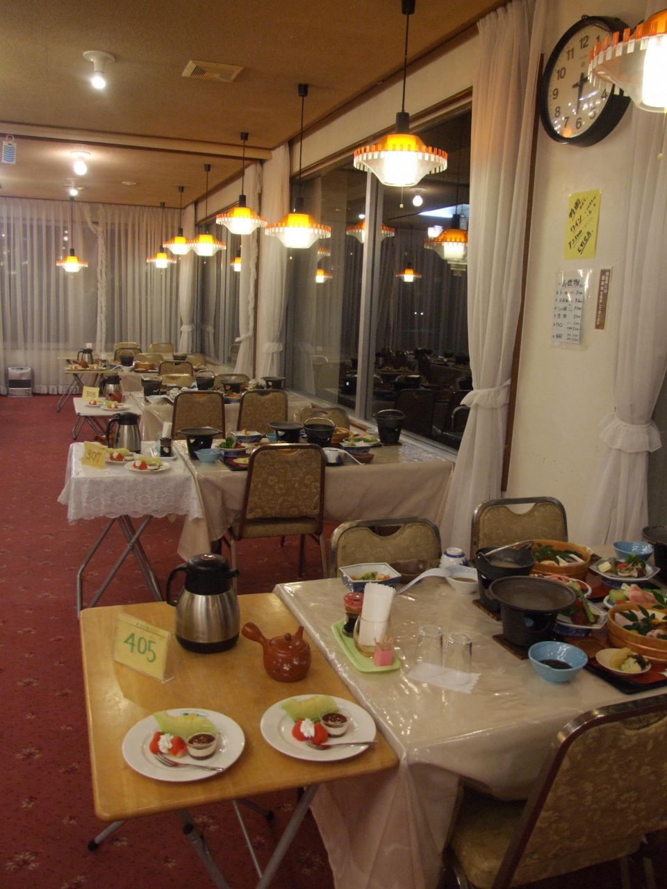 夕、朝食ともバイキング。連泊が限界な品揃えですが、ハマチ?は超新鮮かつ部位毎の味が楽しめました。