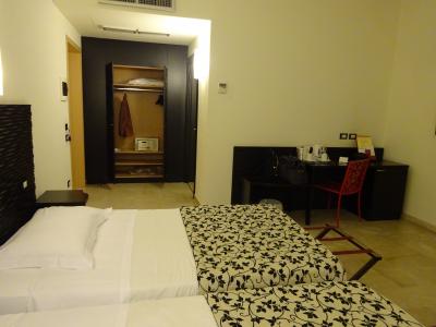 フェラーラでの車の駐車を考慮して、ホテルの周りに駐車場のあるこのホテルを選択しました。ホテルも中佐設備をもっており、周りの駐車場に駐車できないときは1日10ユーロで駐車可能です。部屋は広く設備も整っています。レストランはありませんが、軽食メニューがあり部屋へケータリングできます。難点は旧市街へ徒歩15分ほどなことです。