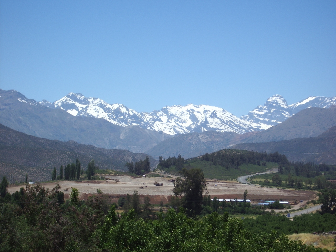 チリのロスアンデス(サンチャゴから南に80kmほど行ったところ)にあるフレンチレストランからの眺望です。アンデスの山々が一望にできます。ロスアンデスの町から少し郊外に出たところにあります。地元では有名なレストランのようです。道路からそれて少し山道を入ったところにあります。眺めがとてもいいところです。空気はとても乾燥していて誇りっぽいです。店の名前が思いだせません。