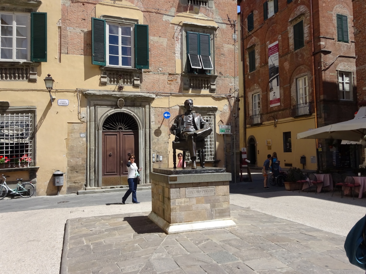 街の至る所に記念館の宣伝がされていたので入ってみることにした。記念館に直接行くと建物に入る扉には鍵がかかっていて、広場の切符売り場で切符を買うように指示されていた。切符を購入してからベルを押すと応答があり、鍵が開き、3階の入り口まで階段を上る。記念館の展示物は個人の持ち物ということで写真撮影は禁止。楽譜、昔のオペラ公演のパンフレット等、当時に色々と思いを馳せて楽しむことができた。記念館には英語の話せるスタッフがいて、気楽に質問に答えてくれる。記念館の窓からはサンミケーレ教会ファサードの天使が見える。最後の展示室には初回トゥーランドット講演で使われた衣装が展示されている。日本の悲劇(ドラマ)の蝶々婦人、中国の悲劇(ドラマ)のトゥーランドットの米国人が書いた物語を使って、プッチーニがオペラに仕立てたとのことだ。
