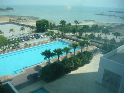 マラッカ海峡を望むにはStrait Viewの部屋を選択、但し、日の入りの方向ではない。ホテルのプールは3階にあり、プールと海がつながっているように見える。朝食はバイキング形式、マレー料理も並ぶ。ホテルから道を隔てて、ショッピングモールがある。モール内に両替所があり、交換レートは良い。