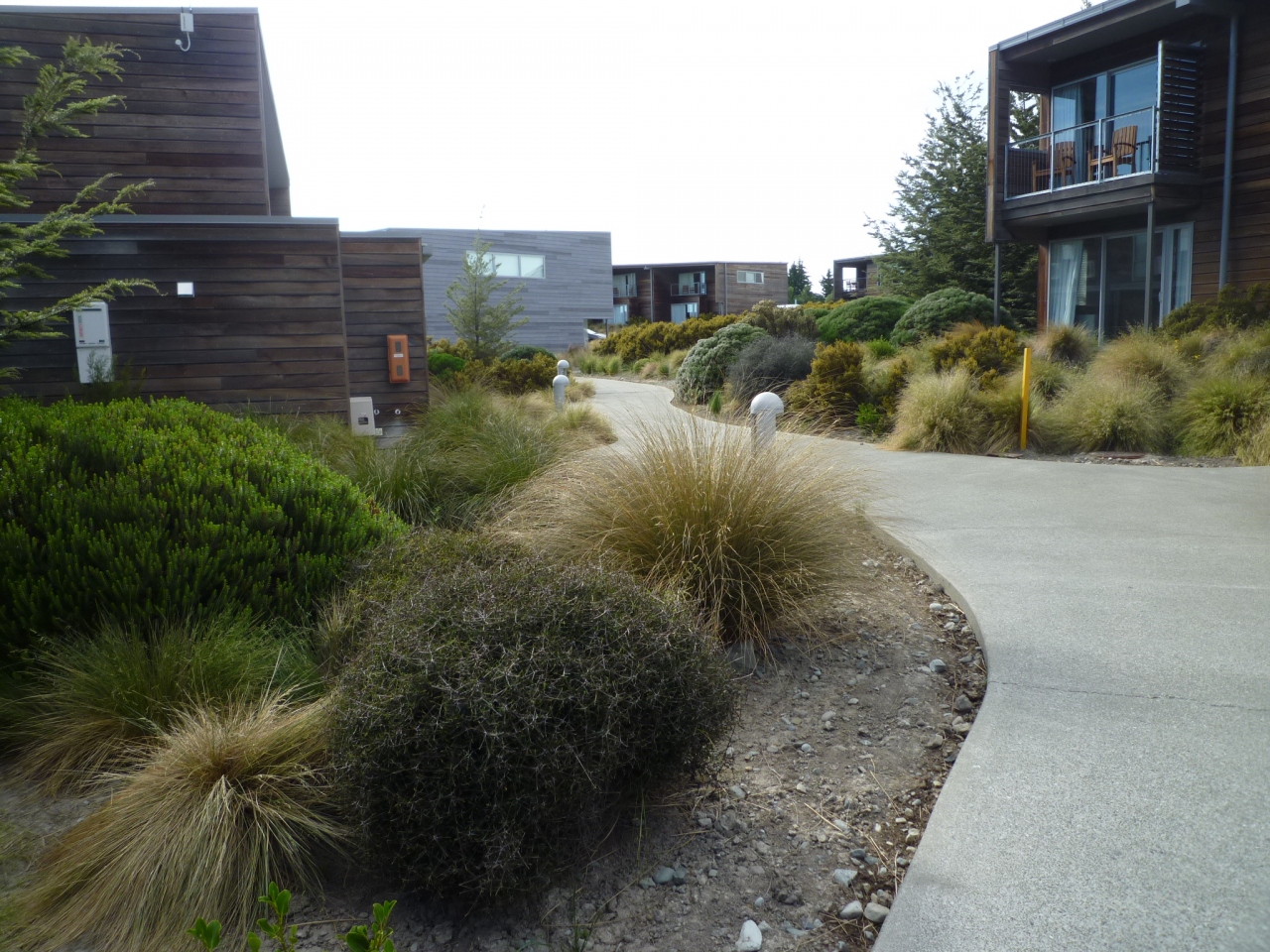 広い敷地に点在する宿泊棟は駐車場に沿って並んでいて、レンタカーで旅行する人には便利です。