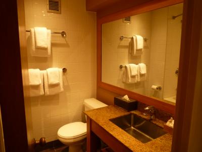 口コミで部屋の狭さが気になったので価格は上がりますがヘリテージルームを予約しました。結果は大正解で部屋の窓からルイーズ湖奥の氷河が眺められ、部屋は広くバスルームの水量も十分で快適でした。