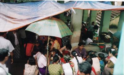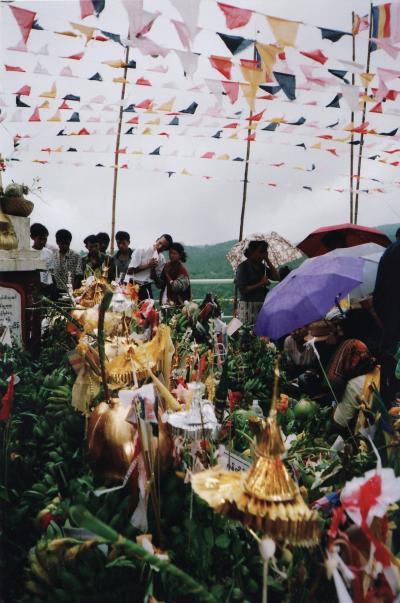 頂上では炊き出しが行われていました。お坊さんに大変な額のお金を渡してい...