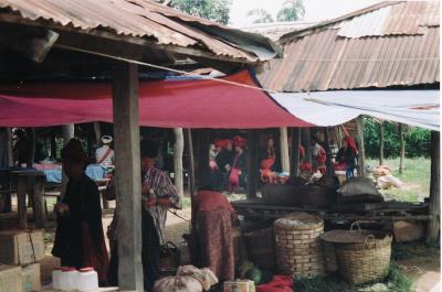 途中でよったマーケットで。彼女達の村をたずねてみたいとガイドにいうとボ...