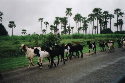 バガンに戻る途中でヤギ使いに遭遇。バガンは本当にヤギが多い。一瞬中近東...