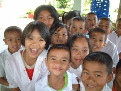タイ東北部・イサーン地区で、学校建設(中学校)のボランティア活動を経験した友人と、その後の学校を見学しました。ボランティア時にお世話になった職人さん達と近くの小学校へ散歩がてら出かけました、その時の子供達です。東京の子供達とは基本的に異なります。・・まず、人見知りをしない・ココロの芯からの笑顔がある・本当に人懐こい子供達でした・・この時の子供達との出会いはとてもヨイ土産になりました。