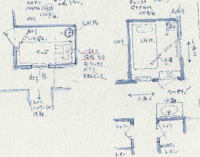 北から、メーサイ、チェンライ、チェンマイ、メーホンソン、カンチャナブリ、バンコク・・とゲストハウスに泊まりましたが・・現在最低料金は一泊100バーツのようです。また、広さは何と1.5畳ファンつき、ベードとあとは40cm位の隙間のみと云う独房のような所もあり、金額のみ優先させて、そこに連泊すると自分は何のために・今何しているのだろう??と妙な気持ちに陥りました。あまりの貧乏旅行も考えモノ・・と帰国後反省の日々です。