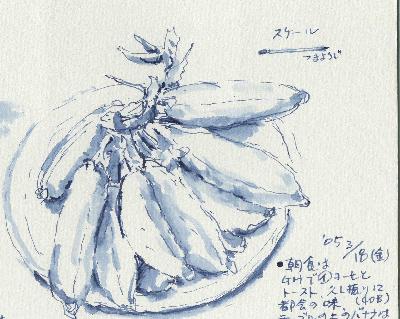 タイは果物が豊富で、小さめのバナナが一房8本位・何と5バーツ(メーホンソンバス停前の店)皮が薄くて実が多く・甘く・日本のバナナより美味しい。また、朝食の定番・焼きバナナも美味しい・・ケーキのようなおイモのようなティーにピッタリの美味しさです。焼く手間がかかっているのでこちらは5バーツで3本(カンチャナブリ)なり。