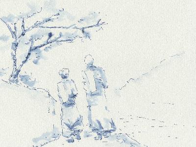 タイ・メーサイからタチレクに入り、好んで裏道を歩き・疲れ・道端で休んでいると、僧侶二人(一人は少女)が通り過ぎた。タイでは少女の僧侶を見たことがないので、軽いオドロキがあった。二人は親子のように会話を交わしながら・・遠のいていった。