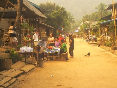 ムアンゴイに行くには、ルアンパバーンからノンキアウまで乗り合いトラックで3時間あまり、そこから1時間ほどモーターボートで川を上ります・・