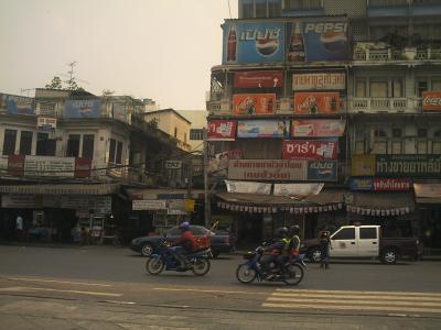 バンコク・ファランボーン駅を正面に見て、右手側道路を渡りレストラン(写真)の前を左に30m位行くと目的のゲストハウスがあります。TATの看板も出ています。