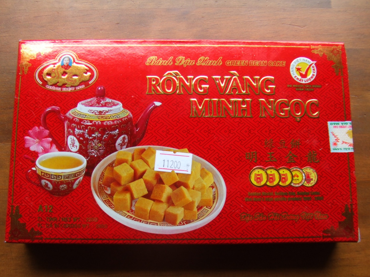 緑豆と書いてあります。日本で言う黄な粉に味が似てて、お茶に会います。