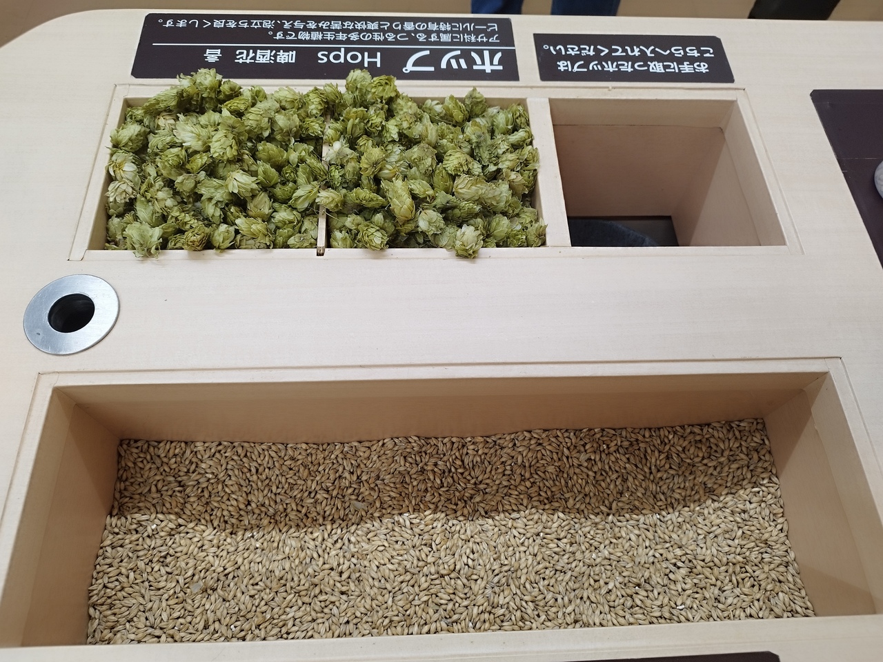 麦、ホップを手に取り、麦汁試飲などしながら見学します。(お一人様500円を受付時に券売機でお支払い)