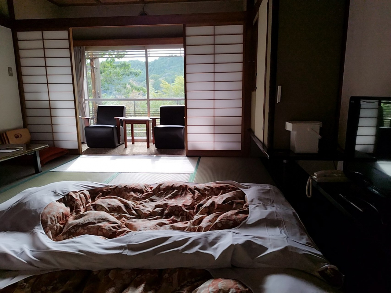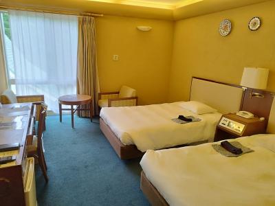 一泊朝食付、山側のセミダブルの部屋のコスパ重視で眺望無し。