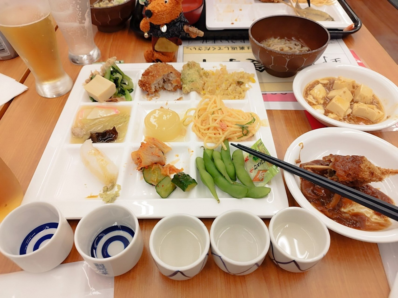 食事は、他の伊東園グループとほぼ同じメニューでご当地感はありませんが、飲み放題つきで今回も大満足でした。