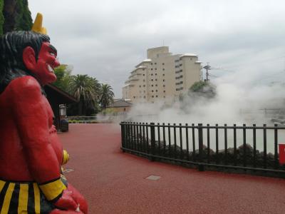 終点の鉄輪温泉で下車し、白池地獄→鬼山地獄→かまど地獄→海地獄→鬼石坊主地獄とめぐり、バスで移動して血の池地獄→龍巻地獄と見て別府駅に戻ります。