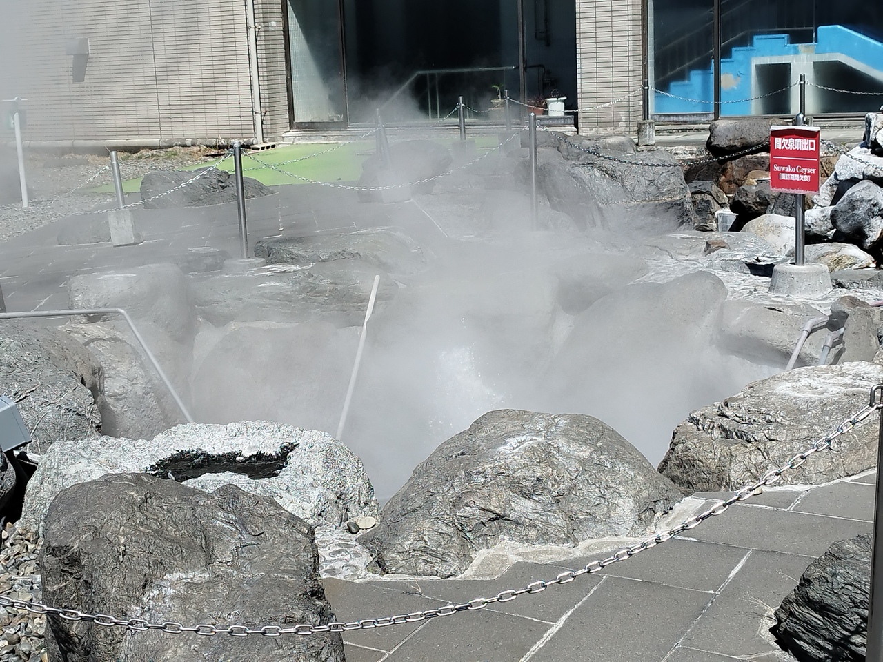 目当ての間欠泉は、昨年3月から吹き上がらなくなってしまったようで、蒸気が上がるのみ。