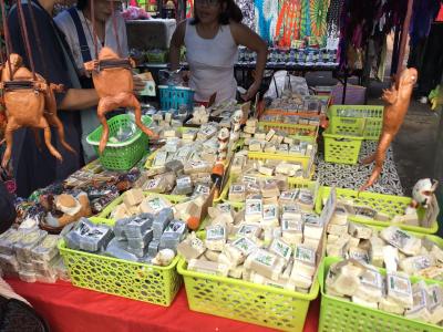 石鹸20個買うと70RMということで、友人と半分ずつ購入し、さらにおまけをお願いすると、バティックで包んだ3個入りパックを2つプレゼントしてくれました。