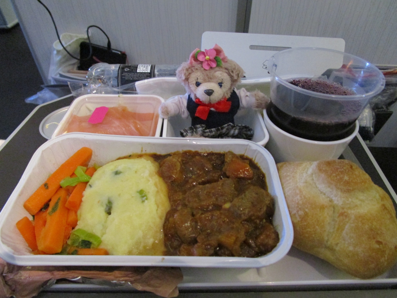 飲み物サービスは頻繁には回ってきませんが、ギャレーに置いてあるスナックと一緒にお飲み物も自由にいただけます。