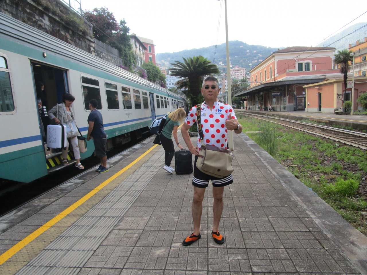 スーツケースがあったのでトロッコ車両は無理かな?と思っていたら、トロッコ車両の前の車両に、自転車を置くスペースがありそこにスーツケースを固定しました。