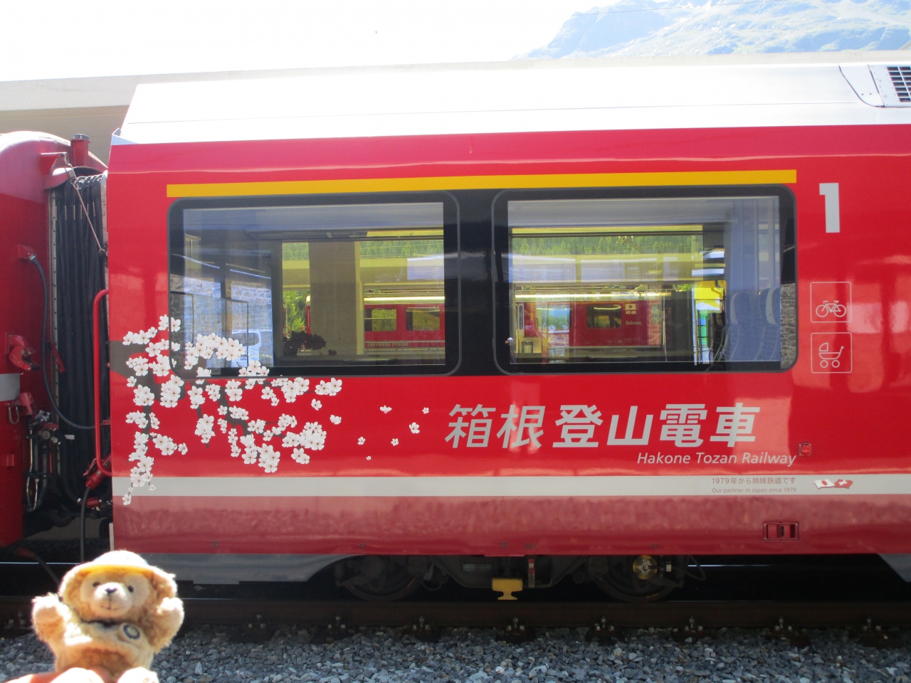 風にあたると寒いかと思っていましたが、乗車した日は天気もよく、気温も高かったのでサンモリッツからアルプグリュムまで半袖で大丈夫でした。