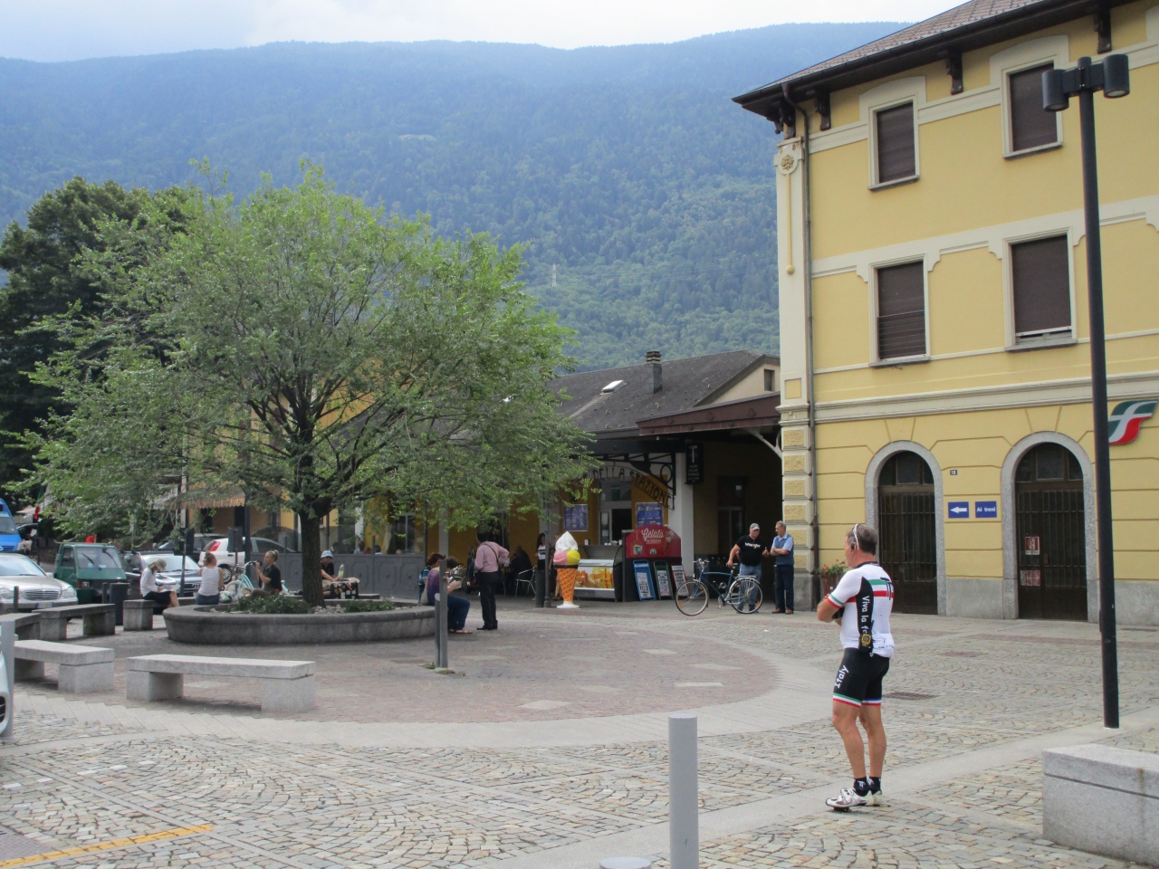 ティラーノではお約束のブルージオループ橋をじっくり見て、ティラーノでは路面電車のように道路を走ります
