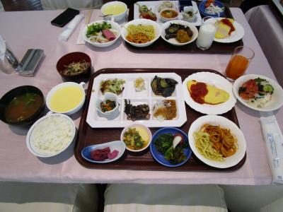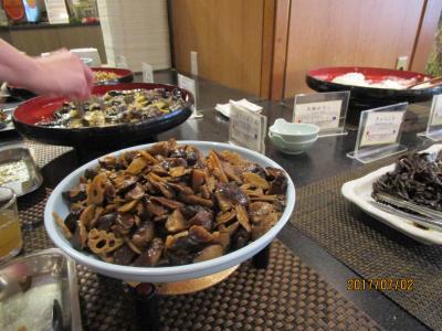 夕食、朝食ともいビュッフェで、種類も多く、外人客用に英語の説明もついていました。