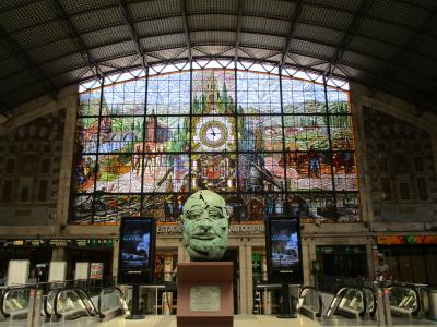 階段を上がってコンコースにでて振り返ると、立派なステンドグラスがあります。